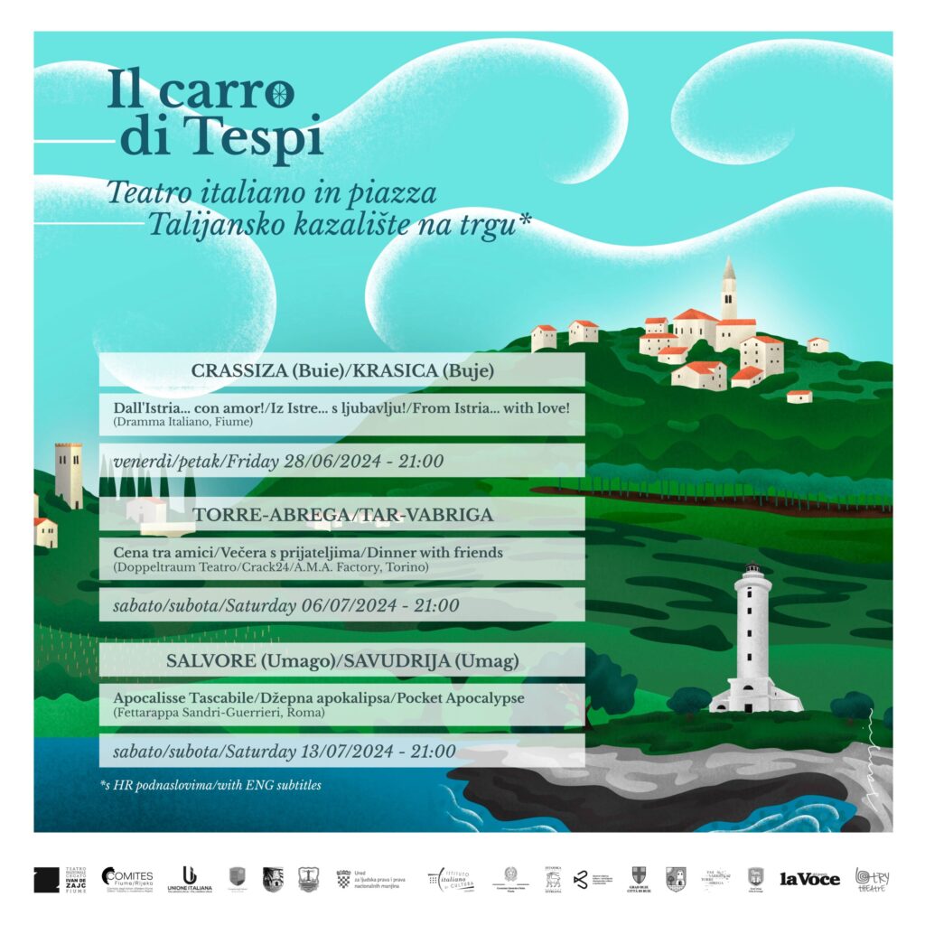 La terza edizione de “Il Carro di Tespi – teatro italiano in piazza” ha riconfermato il forte coinvolgimento del pubblico e l’importanza di portare il teatro fuori dai luoghi tradizionali. La rassegna si è svolta in Istria, permettendo al pubblico locale e ai turisti di assistere a spettacoli di compagnie nazionali e internazionali, e agli artisti di confrontarsi con esperienze diverse e arricchenti.