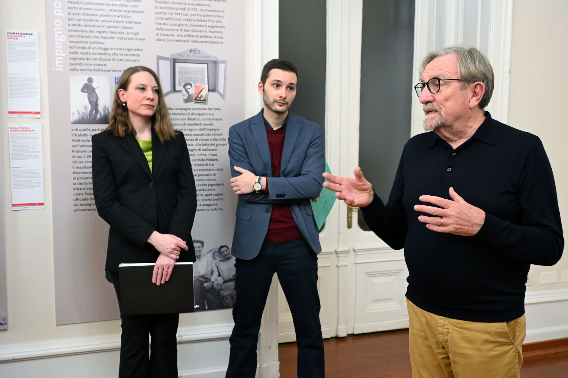 L’esposizione, organizzata dalla Comunità degli italiani di Fiume e dal Comites di Fiume. Con il patrocinio del Consolato Generale d’Italia a Fiume e dell’Istituto Italiano di Cultura di Zagabria, è curata da Mario Brandolin e Renato Danelone in occasione del cinquantesimo anniversario della scomparsa di Pier Paolo Pasolini.